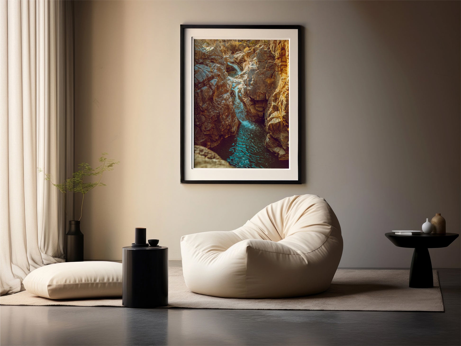 One of those spots that feels like it’s just waiting quietly to be found. The light, the color of the water, the way it all folds into the rock — it had this calm, ancient kind of energy to it.  Limited edition run of 20.