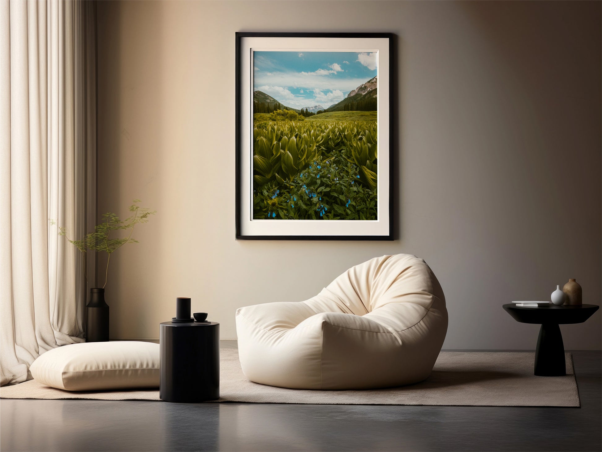 This spot stopped me in my tracks. The contrast between the deep greens, the soft blue blooms, and that mountain framed perfectly in the distance — it all felt alive.  Limited edition run of 20.